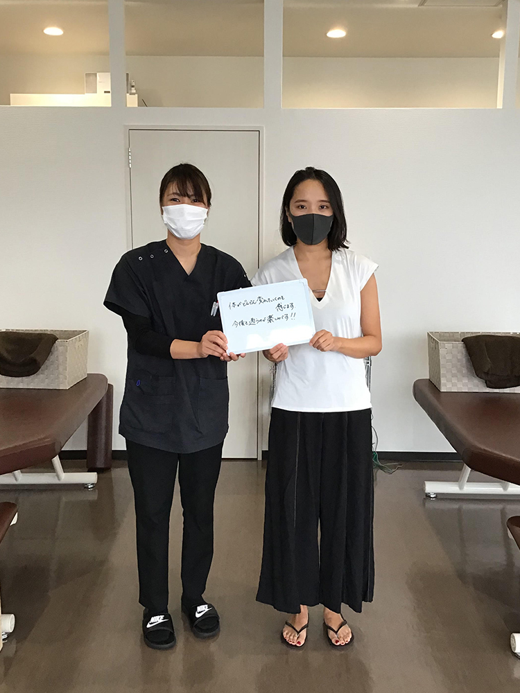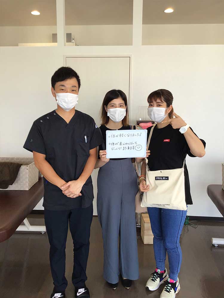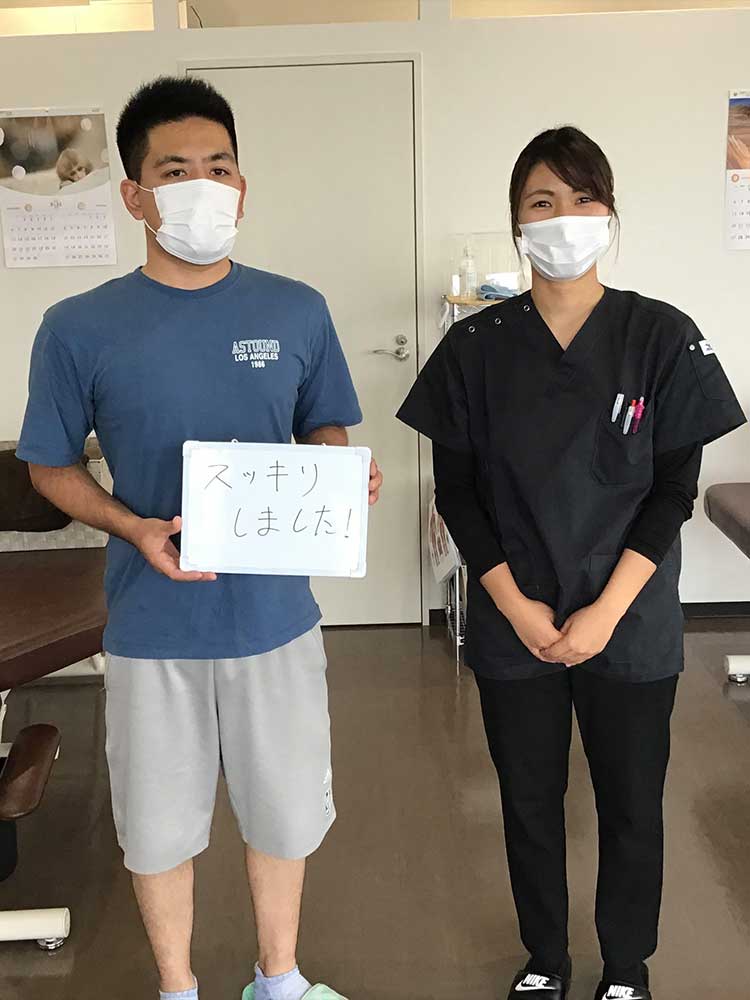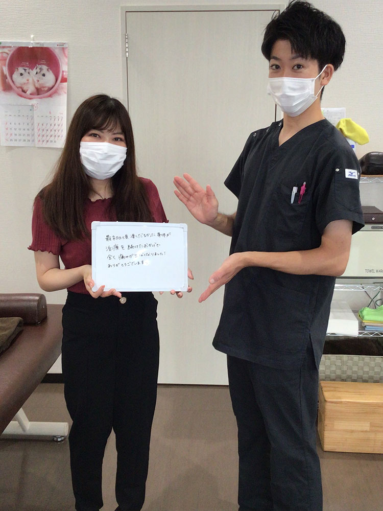 最初の頃、凄くだるかった身体が治療を続けたおかげで全く痛みが出なくなりました!ありがとうございます。